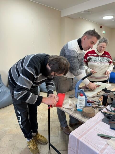 - Trečiąją dieną amatininko vedami užsiėmimai leido įgyti praktinių įgūdžių – dalyviai pasigamino odines apyrankes, išmoko atpažinti kokybišką odą, susipažino su amato subtilybėmis.